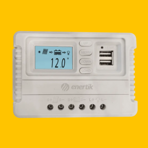 Este modelo está equipado con un display LCD que facilita visualizar en tiempo real información importante del sistema, como el voltaje, la corriente, el estado de carga y la conexión de los paneles solares. También incorpora puertos USB, ideales para cargar dispositivos móviles pequeños directamente desde el controlador, agregando practicidad en instalaciones remotas. El reconocimiento automático del voltaje simplifica la instalación y evita errores al configurar el sistema.