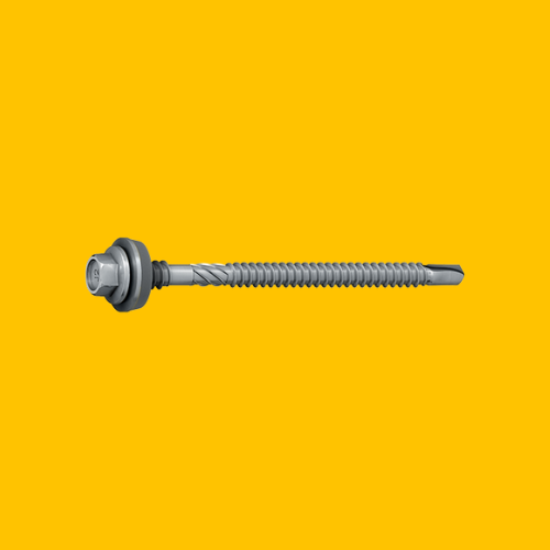 Tornillo de rápida perforación de acero al carbón para la instalación de paneles sándwich en perfiles de acero. Capacidad de perforación de hasta 5 mm. Diámetro de rosca de Ø 5.5 mm y cuerda debajo de la cabeza con diámetro de Ø 6.3 mm. Se puede suministrar con otros tamaños de arandela.